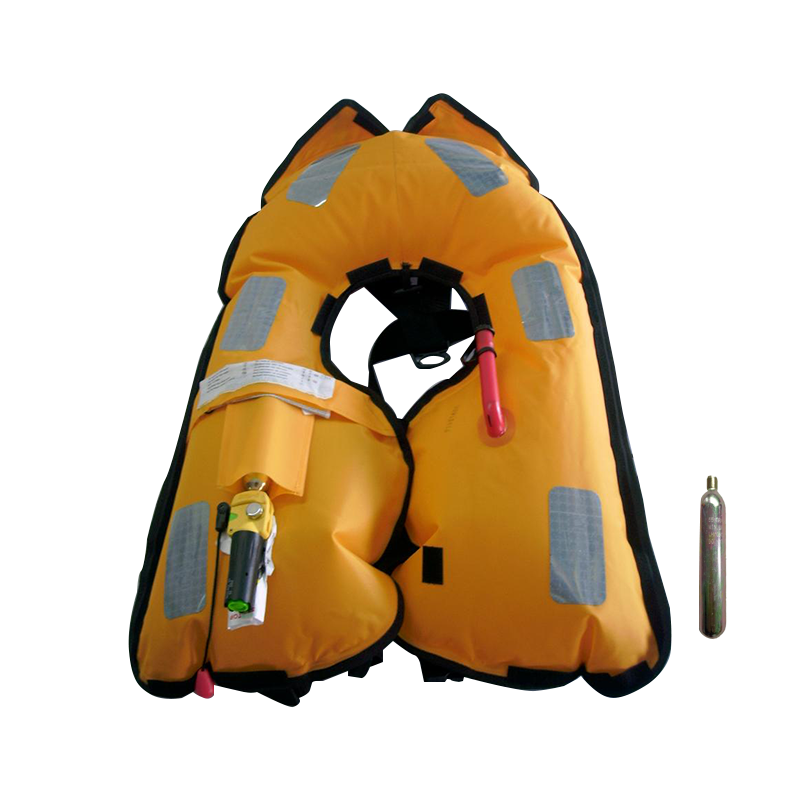 Es verfügt über eine unabhängige Auftriebskammer, die automatisch innerhalb von 5 Sekunden nach dem Eintauchen ins Wasser oder manuell durch Ziehen des Kippschalters aufgeblasen werden kann. Es hält Kopf, Nacken und Schultern über dem Wasser, um die Sicherheit des Trägers zu gewährleisten. Es verfügt auch über eine manuelle Aufblasvorrichtung. Bei Bedarf kann die Schwimmweste durch Herunterziehen des am Bedienkopf befestigten Seils aufgeblasen werden.