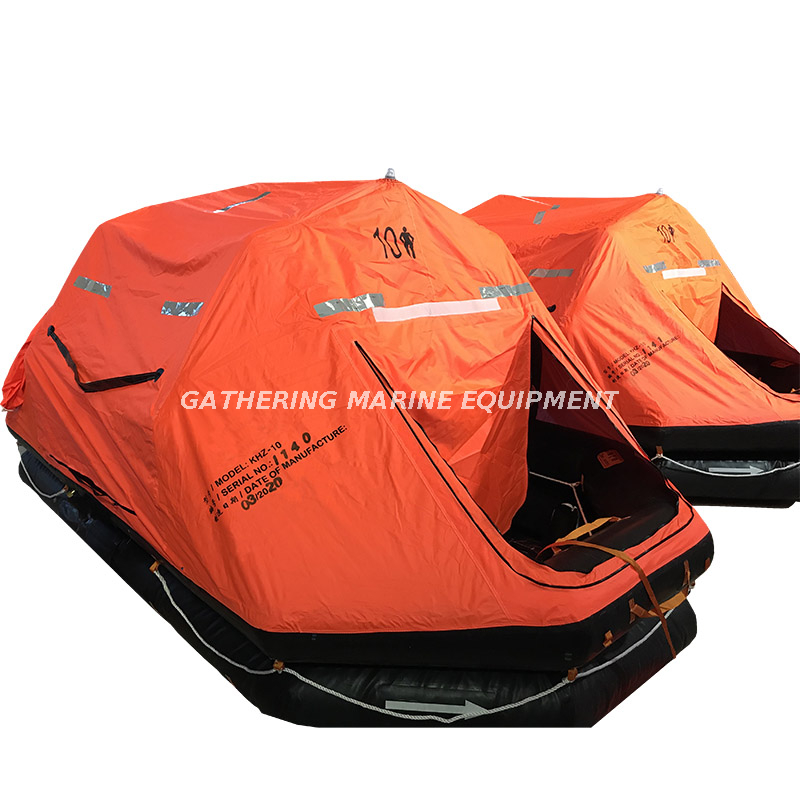 Die Rettungsinsel kann aufgeblasen und automatisch geöffnet werden. Wenn das Schiff sehr schnell sinkt, kann das Rettungsfloß mithilfe der hydrostatischen Auslöseeinheit, die aufgeblasen und automatisch geöffnet werden kann, immer noch aus dem Wasser aufschwimmen.